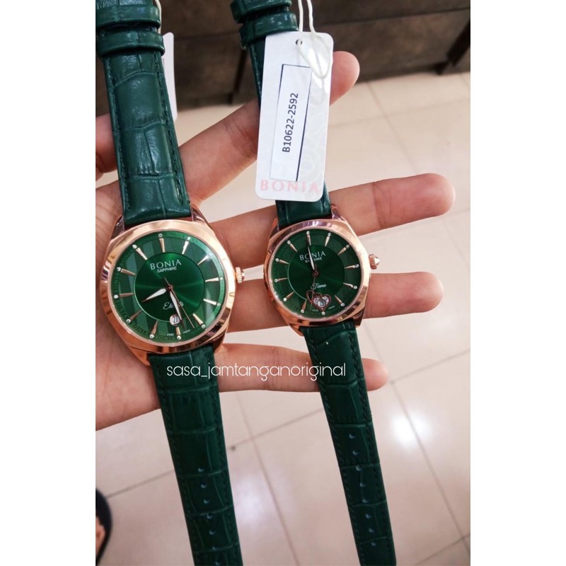 Jual Jam Tangan Bonia Original Shappire 10622 1592 10662 2592 Couple Pria Wanita Kulit Hijau Original Indonesia Shopee Indonesia